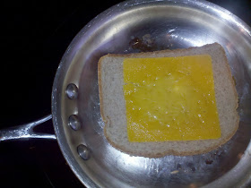 2. Place a fry pan over medium heat on the stove. Once heated, place the buttered piece of bread in the pan- butter side down. Now place the cheese on top.